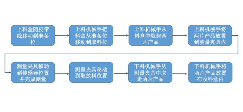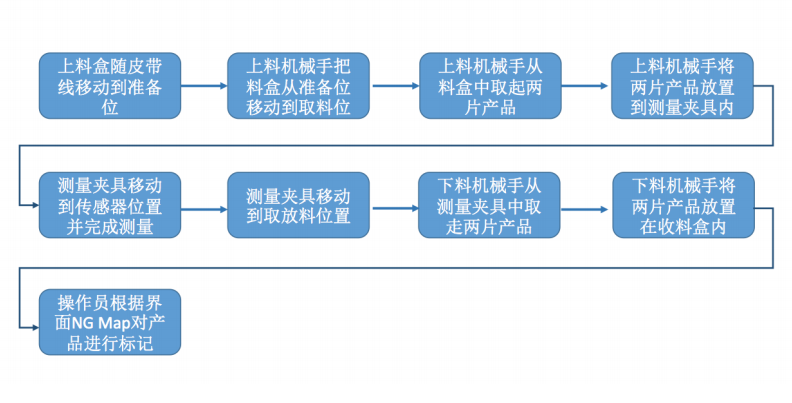 2、本机器包括自动上料机械手、自动上料机械手、颜色测量传感器、搬运模组、皮带线模组、定位相机、运行监控系统等关键组件。